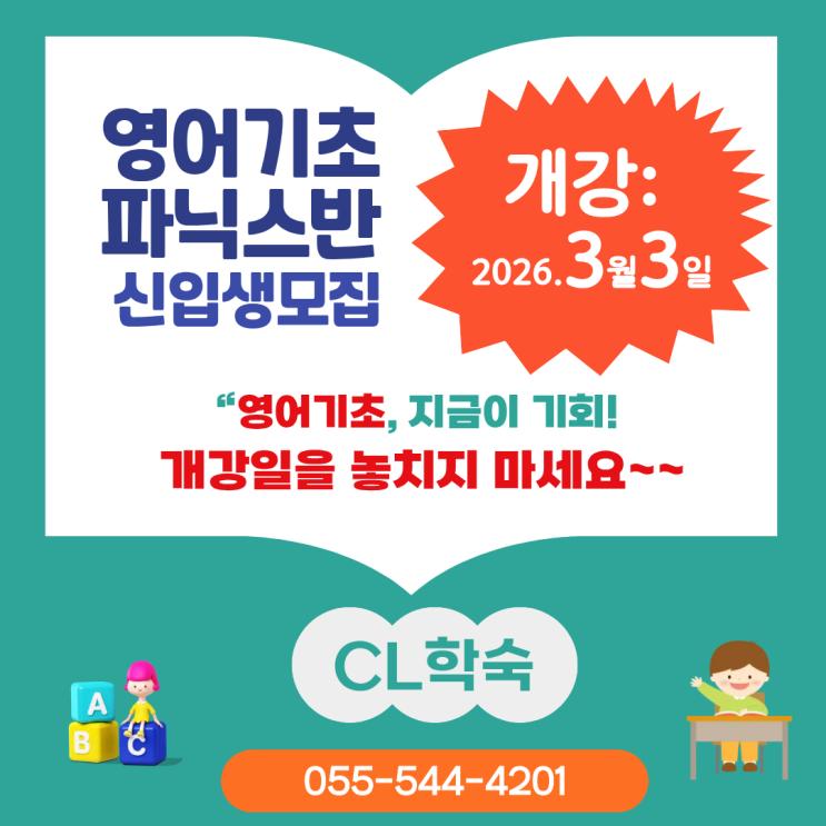 [진해 자은동 영어학원] 초등 파닉스 신규반 개강! 읽기 자신감부터 잡아요