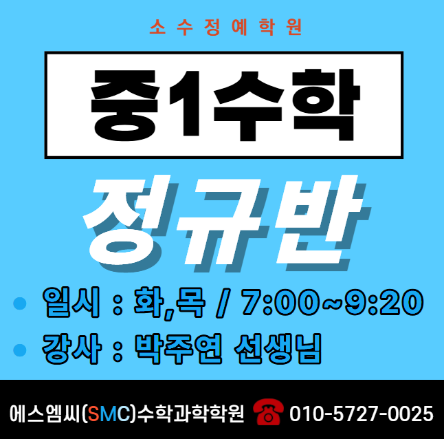 안녕하세요 에스엠씨(SMC)수학과학학원입니다. 수학은 단계별 과정이 필요한 과목으로 중1부터 탄탄하게 다져놓아야 하는 과목입니다. 학년이 올라갈수록 어려워지기 때문에 기초를 탄탄하게 다져놓지 수포자가 될 수도 있습니다. 중학수학을 어려워하거나 두려워 하는 학생들이 있다면 저희학원과 함께 시작해보는건 어떨까요? 자세한 교육과정이 궁금하시다면 언제든지 학원으로 연락주시기 바랍니다. 통화가 어려운 경우 문자 남겨주시면 연락드리겠습니다. ex) 학교/학년/문의내용(간략히) 문의 : 055-541-0025 / 010-5727-0025 <img src="https://blogthumb.pstatic.net/MjAyNjAzMThfOTUg/MDAxNzczODI3ODA2NDU5.A84TcpGvIwNrAh_rmsDzWXOgcnOQnU2V_RzaIn4jkaYg.Ugpl-7cTnSEPd3Gn3jbfv0RGGqxe6RjufLncoHaWyKog.PNG/image.png?type=s3" />