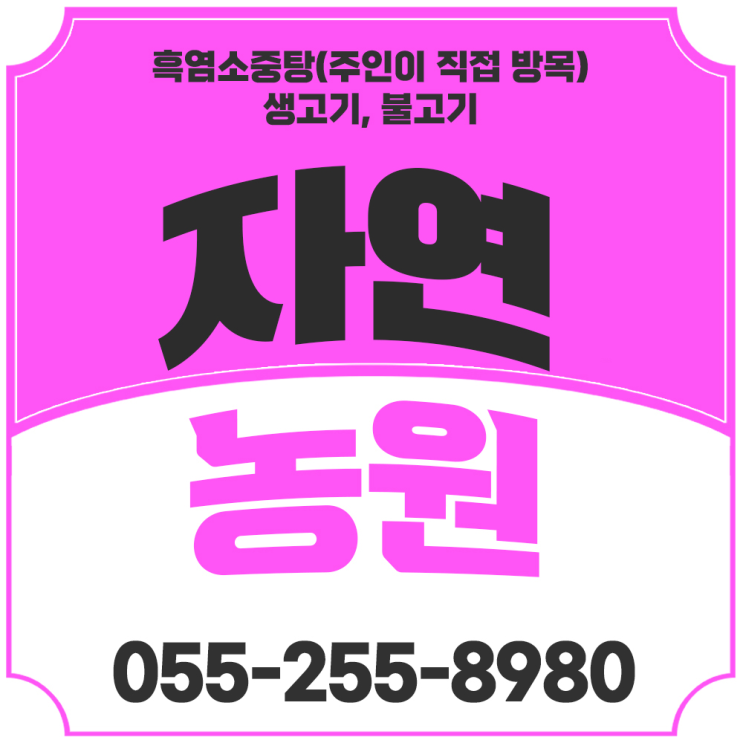 마산 자연농원 ★ 문의 : 055-255-8980 ★ 주소 : 경남 창원시 마산회원구 북성로 298 (회성동) ★ 특징 : 흑염소중탕(주인이 직접 방목) 생고기, 불고기, 중탕 소비자~생산자 직거래 전국택배 좋은 품질 저렴하게판매 합니다 요즘 부쩍 기운이 없고 아침에 일어나기가 무겁게 느껴진다면 내 몸이 보내는 작은 신호일지도 모릅니다. 가족들 챙기느라 정작 본인 건강은 뒷전이었던 분들을 위해 오늘은 경남 창원시 마산회원구 북성로 회성동 언저리에서 정성으로 흑염소를 키우는 곳을 소개해 드리려고 합니다. 공기 좋은 곳에서 뛰어노는 염소들을 직접 돌보며 정직하게 운영하는 곳이라 믿음이 가고 마음까지 든든해지는 기분이 듭니다. 이곳 마....... <img src="https://blogthumb.pstatic.net/MjAyNjAzMDdfODkg/MDAxNzcyODgxODU4NTY0.xpdfBlyCx_L7l3bqwzIhML2G9dSkyLCOR-hmjyw96Ncg.dclQvVCVa8d-78BnuK0y-C64pJ3UNZI_yWXuJyGhC2Yg.PNG/%B9%CC%BB%E7%BF%EB_2_%281%29.png?type=s3" />