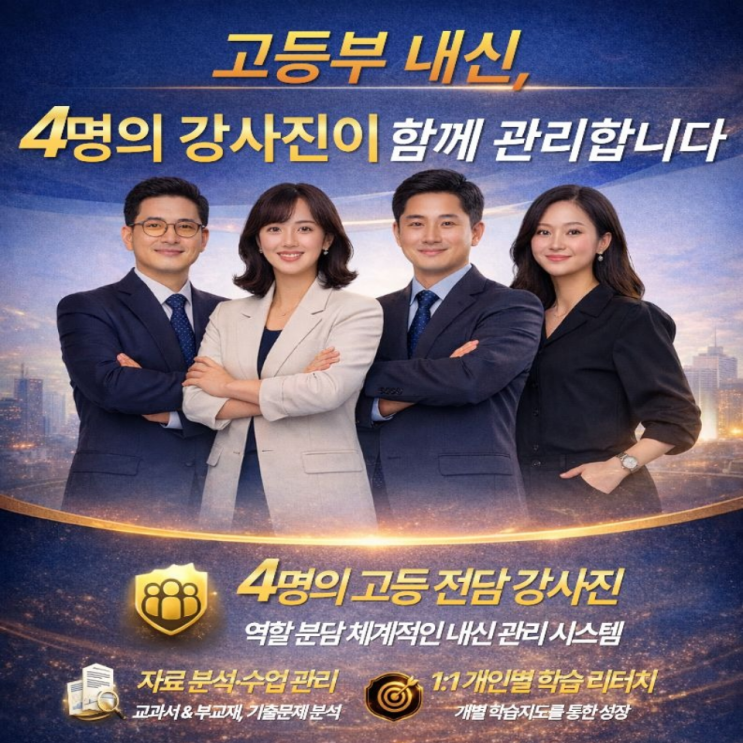 [2026년 고등학교 첫 내신 대비, 지금 시작해야 합니다] 고등학교에 입학한 뒤 맞이하는 첫 내신 시험은 단순한 한 번의 시험이 아니라 앞으로의 내신 등급을 결정하는 중요한 시작점입니다. 많은 학생들이 고등학교 첫 시험에서 생각보다 어려움을 겪습니다. 그 이유는 크게 세 가지입니다. ✔ 중학교와 완전히 다른 시험 난이도 ✔ 학교별로 다른 출제 스타일 ✔ 준비하지 않으면 점수 차이가 나는 서술형 문제 따라서 학교별 시험 스타일을 알고 대비하는 것이 내신 성적을 올리는 가장 확실한 방법입니다. ✔ 학교별 시험 범위 완벽 정리 ✔ 서술형 대비 집중 훈련 ✔ 시험 출제 스타일 분석 문제 풀이 ✔ 실제 시험 대비 실전 테스트 첫 시....... <img src="https://blogthumb.pstatic.net/MjAyNjAzMDlfNDgg/MDAxNzczMDQ3ODQwNzcx.XHftgG6F0PXiebECBQIL528u2QNFItGDuzr9CdZndwIg.sIGZtDV4TvQL0KeGsYPUpPgdiXc6bJGaHwGva7f2wb4g.PNG/%C1%A6%B8%F1%C0%BB_%C0%D4%B7%C2%C7%D8%C1%D6%BC%BC%BF%E4..png?type=s3" />