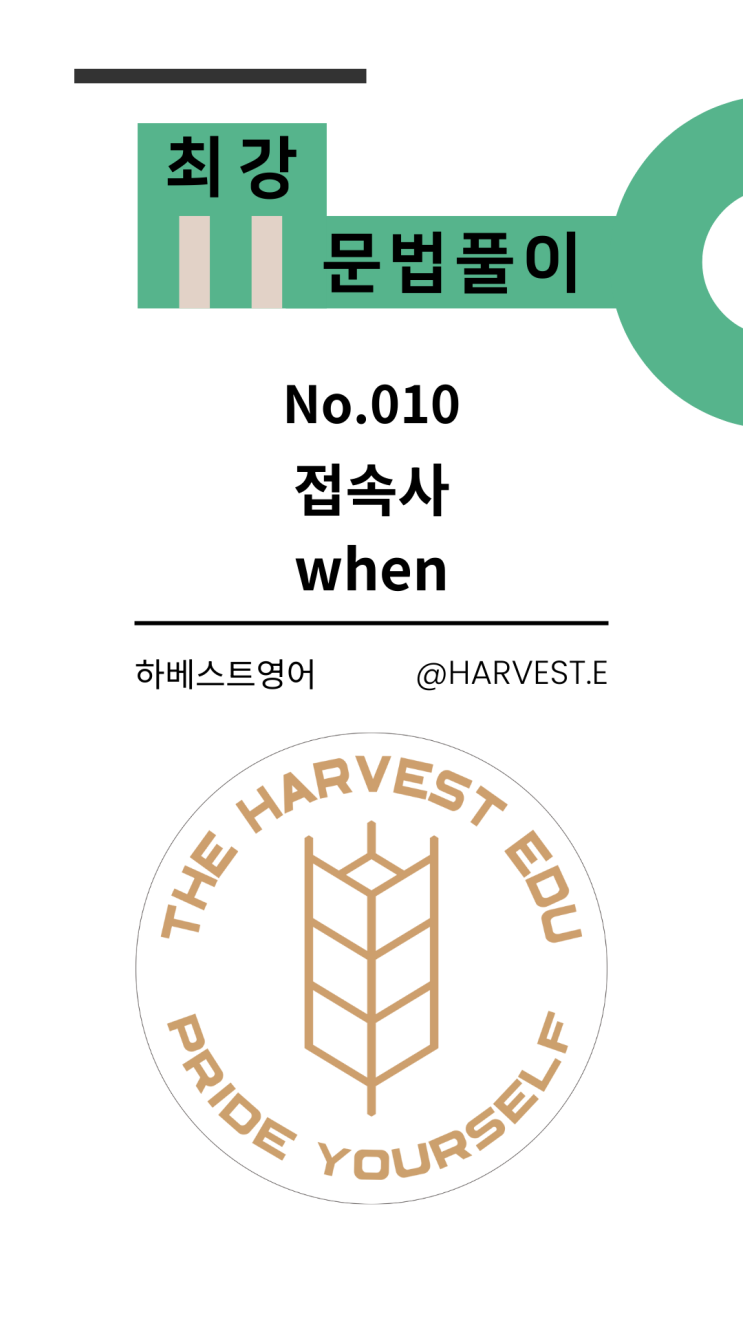 하베스트영어 진주 평거동 영어학원 입시영어 중1 [최강문법10 - 접속사 when]