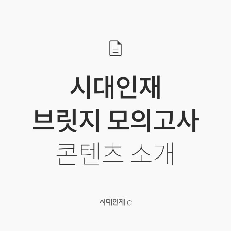 만점으로 향하는 여정의 튼튼한 징검다리 시대인재C 단독 콘텐츠 / 학원용 콘텐츠 선택 구매 가능 시대인재C 단독 콘텐츠와 학원용 콘텐츠 모두 동일한 시대인재 콘텐츠 출제진이 출제하며, 전 문항 100% 신규 출제로 두 콘텐츠 간 중복 문항은 없습니다. C단독 콘텐츠 : 시대인재C에서만 단독 판매하는 콘텐츠 학원용 콘텐츠 : 시대인재 재종 · 단과 · 제휴학원 수업에서 사용하는 것과 동일한 콘텐츠 (학원에서는 ‘전국 모의고사’라는 이름으로 배포됩니다.) ※ 학원 수강생은 중복 구매에 유의하시기 바랍니다. ※ 서바이벌PACK에 포함된 브릿지 모의고사와 동일한 상품이니, 서바이벌PACK을 구매한 고객은 중복 구매에 유의하시기 바랍니다....... <img src="https://blogthumb.pstatic.net/MjAyNjAzMDNfMTEx/MDAxNzcyNTA2NjY1MzYz.DzebJuK0EATgLrsqkgu04bc9hDmHDcWPxFuSoSlaPpcg.QXFYi0tUzfkrnk4XsLaAWzmvp9Slp3saKSBB4Iltzusg.PNG/%BD%C3%B4%EB%C0%CE%C0%E7C.png?type=s3" />
