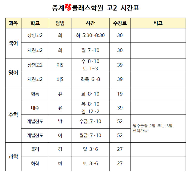 26년 3월개강 ★고1 내신 시간표________________ [이룸영어학원/ 해성여고/휘경여고/청량고/동대부고/대광고/경희고]
