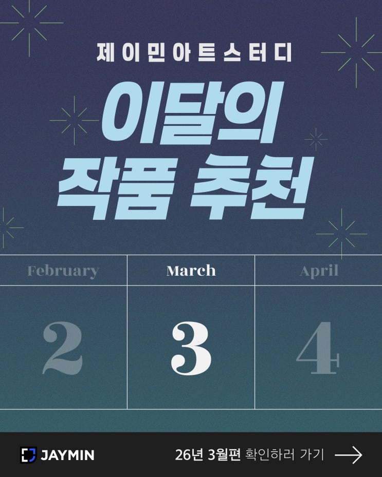 안녕하세요. 제이민 아트스터디입니다. 오늘은 제이민에서 추천하는 2026년 3월 이달의 작품 입니다 :) 함께 보실까요? 웨인 맥그리거 <딥스타리아> 일시 : 26.03.27~03.28 장소 : GS아트센터 구글과 함께 개발한 AI안무툴(AISOMA)을 창작에 반영한 공연! 예능 <천하제빵> 일시 : 26.02.02 공개 플랫폼 : MBN, 넷플릭스 흑백요리사와 비교되는 흥행실패 이유는? 예능 <미스터리 수사단 시즌2> 일시 : 26.02.27 공개 장소 : 넷플릭스 전종연의 미스터리 수사단이 시즌2로 돌아왔다! 전시 <소멸의 시학: 삭는 미술에 대하여> 일시 : 26.01.30~05.03 장소 : 국립현대미술관 서울 6, 7전시실, 전시마당 자연과 인간의 관계에....... <img src="https://blogthumb.pstatic.net/MjAyNjAyMjhfMjIw/MDAxNzcyMjU1NDA1ODE5.jx8u6dBMEj8dvNAlMh2KTljKUmdlnFTVg2cJsF_l3d8g.uGSZZHm7IApr7fugXRoktjCmGNAuMeZEfIGihIBBNhcg.JPEG/%C1%A6%C0%CC%B9%CE%C4%AB%B5%E5%B4%BA%BD%BA_%C0%CC%B4%DE%C0%C7%C0%DB%C7%B0-01.jpg?type=s3" />