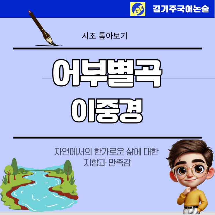 안녕하세요, 김기주 국어 주클래스입니다. 새 학기의 시작과 함께 수능 국어의 높은 벽을 실감하고 있을 수험생 여러분을 위해, 오늘은 2027학년도 수능특강에 수록된 이중경의 '어부별곡'을 깊이 있게 파헤쳐 보려 합니다. 낯선 고어와 한자어 속에 숨겨진 화자의 진심을 함께 읽어볼까요? 감상의 길잡이 이중경의 '어부별곡'은 총 6수로 이루어진 연시조입니다. 작가는 당대 사회적 혼란 속에서 정계에 진출하지 못한 채 자연에 머물게 된 인물입니다. 이 작품에는 정치적 포부를 펼치지 못한 지식인의 고뇌와, 이를 극복하기 위해 선택한 '어부'로서의 삶이 교차되어 나타납니다. 단순히 자연을 즐기는 것을 넘....... <img src="https://blogthumb.pstatic.net/MjAyNjAzMTZfMTEy/MDAxNzczNjE3MTIyOTg0.pz2qPiZzQEKax3mgjaKf_itFrdJ-KCbzqtyfyu8I9T8g.E3ViwJ7IBVjM8-Mn9ktpm7_5ldK1j-tJ6iLktPyRq-Qg.PNG/%C6%C4%B6%F5%BB%F6%B0%FA_%C8%B8%BB%F6_%BD%C9%C7%C3%C7%CF%B0%ED_%B1%F2%B2%FB%C7%D1_%BA%F1%C1%EE%B4%CF%BD%BA_%C4%AB%B5%E5%B4%BA%BD%BA_%C0%DB%BC%BA_%BF%E4%B7%C9_%BE%C8%B3%BB_%B5%F0%C0%DA%C0%CE_%C5%DB%C7%C3%B8%B4_%C0%CE%BD%BA%C5%B8%B1%D7%B7%A5_%C6%F7%BD%BA%C6%AE_%288%29.png?type=s3" />