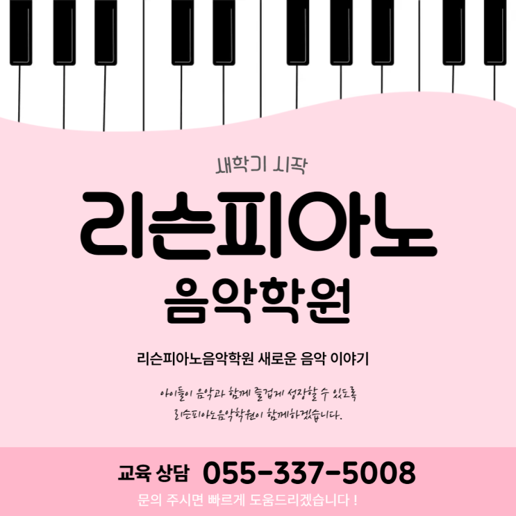 안녕하세요. 아이들의 음악적 성장을 함께하는 리슨피아노음악학원입니다. 새학기가 시작되면서 학원에도 새로운 변화가 생겼습니다. 새로운 학생들이 학원에 들어오고, 기존 학생들도 한 학년 올라가면서 조금 더 성장한 모습으로 수업 을 시작하게 되었어요. 처음 학원에 오는 신입 친구들은 조금 긴장된 표정으로 문을 열고 들어옵니다. 하지만 수업을 시작하고 나면 금방 분위기에 적응하며 피아노와 친해지는 모습을 보여줍니다. 처음 시작하는 피아노, 천천히 즐겁게 리슨피아노음악학원에서는 처음 피아노를 배우는 학생들도 부담 없이 시작할 수 있도록 기초부터 차근차근 수업을 진행합니다. 손 모양, 건반 익히기, 리듬 읽기 같은 기본....... <img src="https://blogthumb.pstatic.net/MjAyNjAzMTBfMTM0/MDAxNzczMTA1ODkyMzU2.aOLYSbEXrIAYPbWCF-UQdgabrODUQK4JpthnWn7ppfUg.JQufzu6vTVZVQ-gRZ3uzApO7uXAbp0Ya_tt0x2UIGCYg.PNG/%BC%D2%BF%B5_%C5%DB%C7%C3%B8%B4_2-055.png?type=s3" />