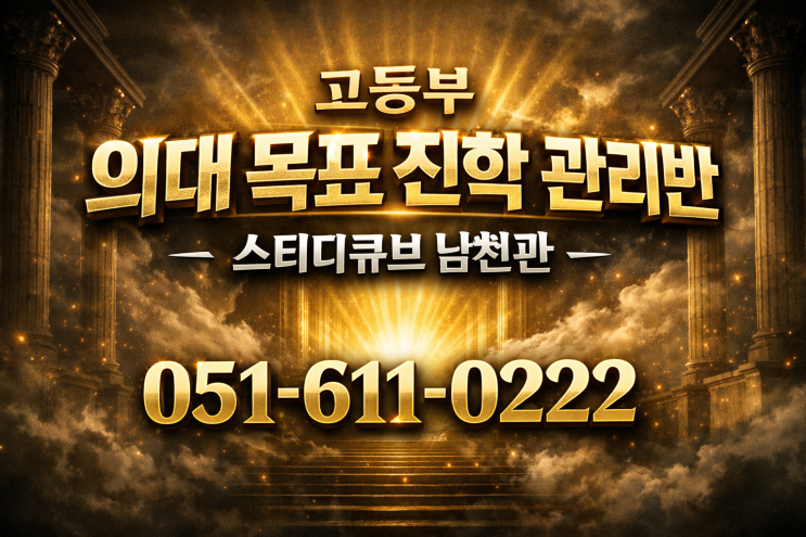고등학교 1학년 1학기 중간고사는 단순한 시험이 아니라 의과대학 진학 경쟁력을 결정짓는 첫 번째 기준입니다. 특히 의대 진학을 목표로 하는 학생에게 고1 내신 성적은 생활기록부 학업 역량을 보여주는 핵심 지표이며 이후 학생부 교과, 학생부 종합, 정시 전략까지 이어지는 입시 경쟁력의 출발점이 됩니다. 스터디큐브 남천관은 이러한 입시 흐름을 반영하여 고등학교 1학년 1학기 중간고사 학교별 시험 대비반과 최상위 의대 진학 관리반을 운영합니다. 본 과정은 대연동과 용호동 지역 주요 고등학교인 동천고, 덕문여고, 예문여고, 대연고, 분포고의 교과서·부교재·기출문제·출제 경향을 분석하여 구성된 학교 맞춤형 내신 대비 프로그램....... <img src="https://blogthumb.pstatic.net/MjAyNjAzMTZfMTg1/MDAxNzczNjU3MTU5NTcy.fXTrWQrNpTFGv2eFjYbYv-MJ5BX_oQDa-qOmrCYmsyYg.CAFV7cDcUOQnypvhalkLDk03Qp3YE44gijpZmtAPdUsg.PNG/35.png?type=s3" />