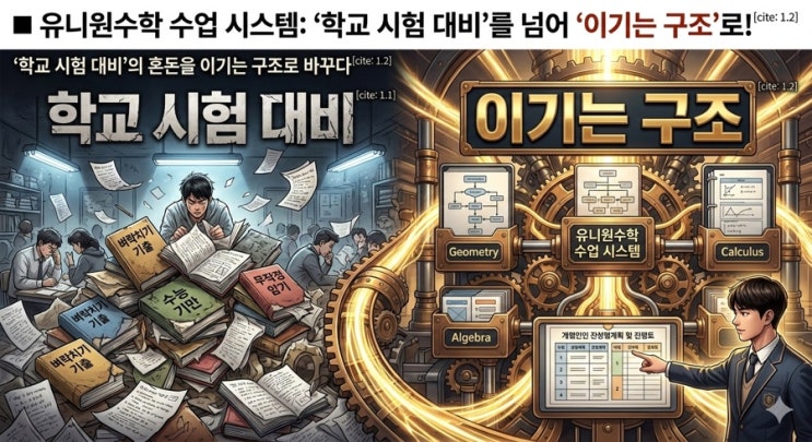 유니원수학 학기중 시간표 및 수업 시스템 안내 안녕하세요 여의도 수학학원에서 학생들의 “고장난 수학공부법”을 고치고 있는 유니원수학의 동혁쌤입니다. 벌써,3월입니다. 신학기와 함께 학기 중 운영 체제로 전환합니다. 학교 수업, 수행평가, 중간고사가 동시에 움직이는 시기입니다. 이 시기에는 속도보다 리듬, 양보다 구조가 중요합니다. ■ 학기 중 수업 시간 초등 3시, 4시 중등 4시, 5시, 6시 고등 5시, 6시, 7시, 8시 예정 시간보다 일찍 등원하는 학생들은 첨삭실(자습실)에서 일일테스트 복습, 숙제 오답 수정, 개념 노트 정리를 진행합니다. 기다리는 시간이 아니라 정리하는 시간입니다. 해당 타임이 되면 강의실로 이동하여 바....... <img src="https://blogthumb.pstatic.net/MjAyNjAzMDJfNDQg/MDAxNzcyNDMyOTA2OTky.0Ssw_Li4GQzN3B9EztLD1NKGW22bDrRcvlX1yPJF9e8g.LGkd1-EkGC6BmE5-pb654166oGSgzEUT4QODIRSkP-wg.JPEG/IMG%A3%DF4955.jpg?type=s3" />