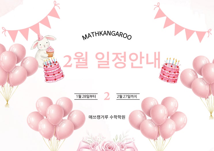 안녕하세요~ 따뜻하게 품어서 더 멀리 더 높이! 프리미엄 개별 맞춤 수학 전문 목동 매쓰캥거루 수학입니다 ^^ 겨울의 끝자락과 새 학기의 시작이 맞닿아 있는 2월은 아이들의 학습 흐름을 정리하고 새로운 출발을 준비하는 중요한 시기입니다. 매쓰캥거루 수학학원은 2월 한 달 동안도 아이들이 흔들림 없이 자기 페이스를 유지하며 탄탄한 학습을 이어갈 수 있도록 체계적인 수업 일정과 꼼꼼한 관리로 함께하겠습니다. 1. 2월 수업 일정 안내 2월 수업 세션은 1월 28일(수)부터 2월 27일(금)까지 진행됩니다. 설 연휴는 2월 16일(월)부터 2월 18일(수)까지 입니다. 2. 2월 보강일 안내 2월 보강은 2월 7일(토)에 진행됩니다. 오전 10시, 오후....... <img src="https://blogthumb.pstatic.net/MjAyNjAxMjZfNTkg/MDAxNzY5Mzk3MTY0NTg5.0uGyb8sJCxVCs7GKtXKlivwRZDuuvwqFdRHi4tL-lv8g.KkVgW1l1ywf0fSSXMD69-87UqSezyfVhe2kHbW_tuWQg.JPEG/2026%B3%E2-2%BF%F9-%C0%CF%C1%A4%BE%C8%B3%BB-001.jpg?type=s3" />