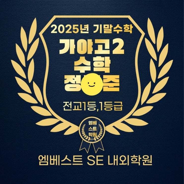 2025년 기말고사 수학 성적 폭발! 엠베스트 SE 내외 학원의 영광스러운 얼굴들 안녕하세요, 엠베스트 SE 내외 학원입니다! 지난 2025년 기말고사에서도 우리 학생들이 정말 놀라운 결실을 맺었습니다. 스스로의 한계를 뛰어넘어 최고의 성적을 거둔 우리 자랑스러운 아이들을 소개합니다! 고등부: 독보적인 실력, 1등급의 주인공들 치열한 내신 경쟁 속에서도 당당히 수학 1등급과 전교 1등을 거머쥐었습니다. 가야고 2학년 정ㅇ준 (전교 1등 & 1등급) 가야고 2학년 문ㅇ진 (1등급) 중앙여고 2학년 송ㅇ경 (1등급) 제일고 1학년 김ㅇ경 (1등급) 중등부: 100점 행진! 노력이 결실이 되는 순간 경운중, 임호중, 가야중 등 지역....... <img src="https://blogthumb.pstatic.net/MjAyNjAxMDhfMTE3/MDAxNzY3ODE5Mjg4NDc1.8RRP71hWXvI_EfHAKOVaInhQTy_cQcnrk8DJDZyvNg4g.yI3PGHBYt0NHLGXOXef05blpmtVoTiu6BWmcAFsjCdgg.JPEG/900%A3%DF1767797928965.jpg?type=s3" />