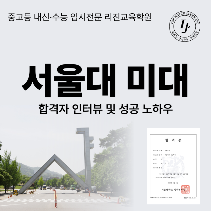 서울대 미대합격 리진교육 수강생 리진교육 재원생 중 서울대미대에 합격한 학생이 전해주는 예고입시 성공 노하우를 공유해드립니다. 멘탈 관리부터 영어 공부법, 예고 미술부 준비 전략까지 꿀팁 꼭 얻어가세요! 안녕하세요? 선화예고 전문 영어 수학 학원 리진교육입니다. 며칠 전, 리진교육에 특별한 손님이 찾아왔습니다. 서울대 미대에 합격한 서울예고 졸업생 김OO 학생입니다. 선물을 들고 환하게 웃으며 들어오는 모습에서, 고등학교 3년 동안 함께했던 시간들이 주마등처럼 스쳐 지나갔습니다. "선생님, 정말 감사했어요." 그 한마디에 힘들어도 매일 매일 최선을 다 해서 연구하고, 가르치길 잘했다는 생각이 들었습니다. 함....... <img src="https://blogthumb.pstatic.net/MjAyNjAyMTBfMTI0/MDAxNzcwNjk1MzIxMjkx.T5-nU-qqmO6qK9Ql6QbQPuBR_nNs5SvovC1u8Jjc1z0g.jlMCTb0XAbyG9I58VQk_BCKltzudWIAaqIwWZ8E7D9Ag.PNG/image.png?type=s3" />