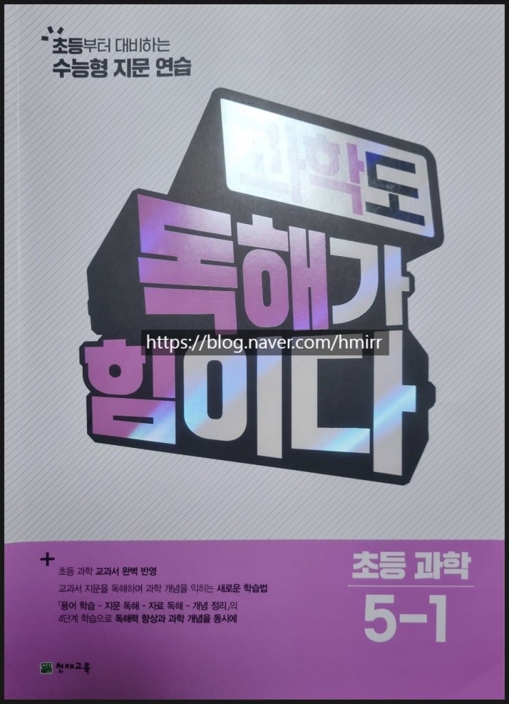 안녕하세요. 오늘은 초등 과학 문제집 과학도 독해가 힘이다 5학년 1학기 교재를 리뷰해 보겠습니다. 26년부터 5~6학년은 22개정이 반영됩니다. 22개정이 반영된 교재인지 꼭 확인하셔야 학습에 도움이 됩니다. 1단계는 교과서 용어와 기본 학습으로 용어와 실생활 글을 통해 핵심 용어들을 잘 알려주며 용어 확장을 통해 자세하지만 간결하게 설명되어 있어 너무 좋았습니다. 2단계는 교과서 지문 + 독해로 교과서 지문을 독해하면서 과학 개념을 이해할 수 있도록 하였습니다. 이 과정이 과학적 배경이나 개념들을 이해하기 좋은 과정이라고 생각됩니다. 3~4단계는 교과서 자료 및 개념 정리로 교과서 실험 및 자료를 해석하고 도식화하는 과정....... <img src="https://blogthumb.pstatic.net/MjAyNjAxMDdfMjk5/MDAxNzY3NzkyMzcwMTU0.arzqXngWjNnmn66ZMSyLblT9vjFuD0AlZksU4frk5Scg.n_KD2EjoOaofO3l6Q2LOhXKoMs02YX3LoSTHnfvPYz0g.JPEG/KakaoTalk_20260107_221517138.jpg?type=s3" />