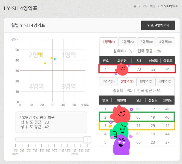 안녕하세요, 비슬초 영어학원 비슬 윤선생 우리집앞영어교실 YES 엘리쌤입니다. 설 연휴때문에 개강일 9일 월요일로 밀리면서 비슬초 영어학원 비슬 윤선생 우리집앞영어교실에서는 바로 오늘 2월 온라인 우수자와 단어왕 시상식을 하게 되었네요. 지난 2월 온라인 King 1등은 Y-SLI 73점의 Luna! 2등은 71점의 Jacob! 3등은 65점의 Ley! 모두 모두 축하합니다. 사실 지난 1달동안은 모두 SLI 점수가 60점 이상이고, 4영역표에서 모두 2영역 이상에 머물러서 칭찬할만한 1달이었습니다. 성취도는 50점 만점에 40점 이상이니 우리 모두 조금씩 힘을 내서 성실도를 20점 이상으로 올려보는 3월 1달이 되면 좋겠습니다. 비슬초 영어학원 비슬 윤선생....... <img src="https://blogthumb.pstatic.net/MjAyNjAzMTBfOTYg/MDAxNzczMTE3OTM3NTgw.CaVfjzPQNODdiP0rtq8EQVcy07kV8cPfQC1NzoY-1yog.3bJhBxyqsypwyf1GkxBZhkbuE5eClHRcfDUxAJy9bcMg.JPEG/2%BF%F9%BF%C2%B6%F3%C0%CE.jpg?type=s3" />