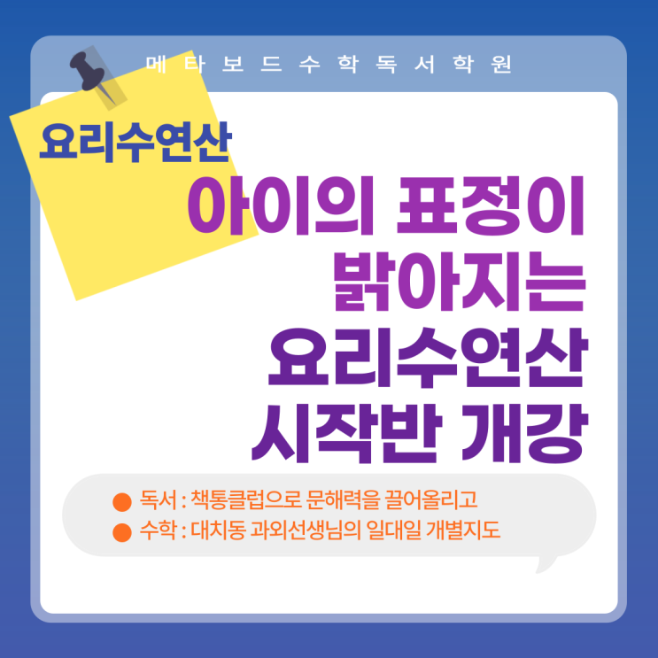 가 초등 저학년 수학, ‘연산 자신감’이 고등수학 실력을 좌우합니다! 초등 저학년 수학에서 가장 중요한 것은 문제집을 많이 푸는 것도, 선행을 빠르게 나가는 것도 아닙니다. 아이 스스로 계산이 두렵지 않고, 정확하고, 빠르게 처리할 수 있는 힘, 바로 연산 자신감입니다. 연산이 불안한 아이들은 문제를 읽는 순간 계산부터 겁이 나고 풀이 과정에서 실수가 반복되며 “나는 수학이 약해”라는 인식이 아주 이른 시기에 자리 잡게 됩니다. 반대로 연산이 탄탄한 아이들은 문제를 읽고 생각하는 데 에너지를 쓸 수 있고 수학을 ‘어렵지 않은 과목’으로 받아들이며 학년이 올라갈수록 사고력 수학에도 훨씬 안정적으로 적응합니다. 그래서....... <img src="https://blogthumb.pstatic.net/MjAyNjAyMTJfMTg4/MDAxNzcwODYxNzU4MDA1.I4qAWkDabjjnoN8hYbRU10ulf2XewkPi5CAeU5GhOlYg._2rfqjXdaoue3CW26ZoxfTOxpAtALYxryzTlWVL_HPQg.PNG/%C1%A6%B8%F1%C0%BB-%C0%D4%B7%C2%C7%D8%C1%D6%BC%BC%BF%E4_-001_%2844%29.png?type=s3" />