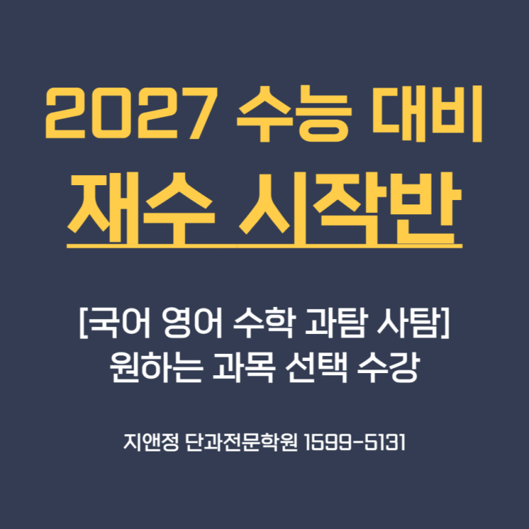 2027학년도 수능대비 재수 시작반 수업 송파 재수단과 지앤정학원 2025년 수능을 준비한 모든 수험생들 수고가 많으셨습니다. 성적 발표는 이미 완료되었고, 이후 수시 합격자 등록 또한 12월 23일을 기점으로 미등록 충원 합격 통보 마감이 되었습니다. 정시의 경우 12월 29일부터 원서 접수가 시작되어 최종 합격자 발표는 2026년 2월 2일까지 하게 됩니다. 받은 성적으로 원서 접수를 최대한 전략적으로 접근해 만족하는 입시 결과가 되었으면 합니다. 2025년 수능은 수시가 이미 종료되는 단계고, 정시 또한 접수만 남아 있어 기다려야 하는 시간이 되었습니다. 하지만 송파 지앤정 단과전문학원은 2026 수능을 다시 도전해 발전하고 더 좋은....... <img src="https://blogthumb.pstatic.net/MjAyNTEyMjBfMjIw/MDAxNzY2MjA5NDY2OTU1.cuYOyO2ulvVkhFniI9R4_kcOP4TDPkjogVSxQikkz0Mg.3Nneq4Q_C4rYeC_7_FCNirknFzR6glBJ1MhSv7VXMiAg.PNG/%BF%E4%C3%BB_%C6%F7%BD%BA%C6%C3_%BD%E6%B3%D7%C0%CF_%BA%B9%BB%E7%BA%BB-005.png?type=s3" />