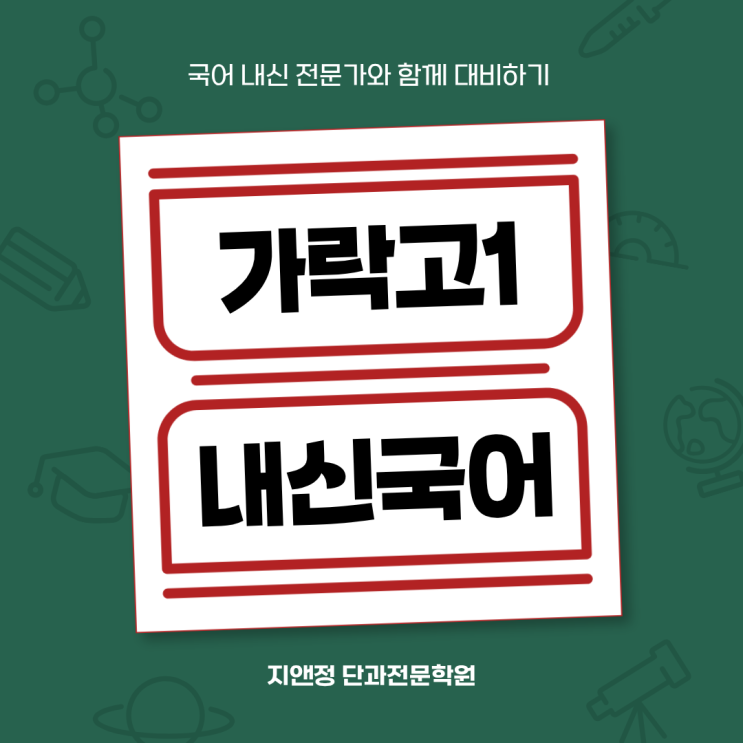 중학교때는 국어에 자신감이 있고 점수가 잘 나왔는데.. 가락고 국어 시험준비가 왜 이렇게 어려울까요? 갑자기 3~4등급도 벅차요. 가락고 학부모님들이 늘 송파 지앤정학원에 오셔서 상담하실 때 가장 많이 하는 이야기입니다. 아직 1학기 중간고사가 끝나가는 기간이지만, 시험이 끝난 뒤 올해도 다르지 않을 거라 생각합니다. 그 이유가 뭘까요? 가락고 1학년 공통국어 시험은 중학교처럼 더 이상 단순 암기형 문제로 출제되지 않습니다. 지문을 올바르게 이해하고 근거를 둔 판단으로 문제를 풀어낼 수 있는 능력을 갖추어야 합니다. 2022 교육과정으로 개정된 뒤 2번째 고1 과정을 학습하게 되는 현 가락고1 학생들입니다. 예전처럼 문학 작....... <img src="https://blogthumb.pstatic.net/MjAyNjAzMjlfMzAw/MDAxNzc0Nzc1ODcxMjc4.t-njGfZpgLsJF3-SD_MQ1h01Ih6XU9WjhidzxKiQ_8og.j_s0dHG_klDZ0ahYqb-NK8vD5f7rlDvXq25FUW4qjfgg.PNG/1.png?type=s3" />
