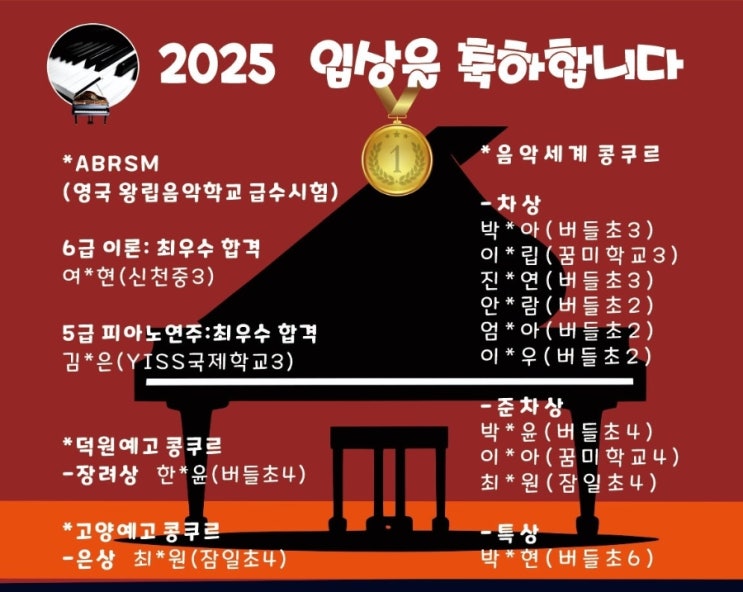 2025년 입상을 축하합니다~~ #트리지움피아노학원 #버들초피아노학원 #잠신초피아노학원#잠일초피아노학원 <img src="https://blogthumb.pstatic.net/MjAyNTEyMDhfMTA0/MDAxNzY1MTc3OTg5NDk4.JOulngLfr0Cym8kT8X0c_IPbGn2Qj5qS8-fmc8UGa54g.5scU3oaJ60ybnISPiyTio38s9ZJ6DEVdvBmhkptgjzMg.JPEG/900%A3%DF17651654713172.jpg?type=s3" />