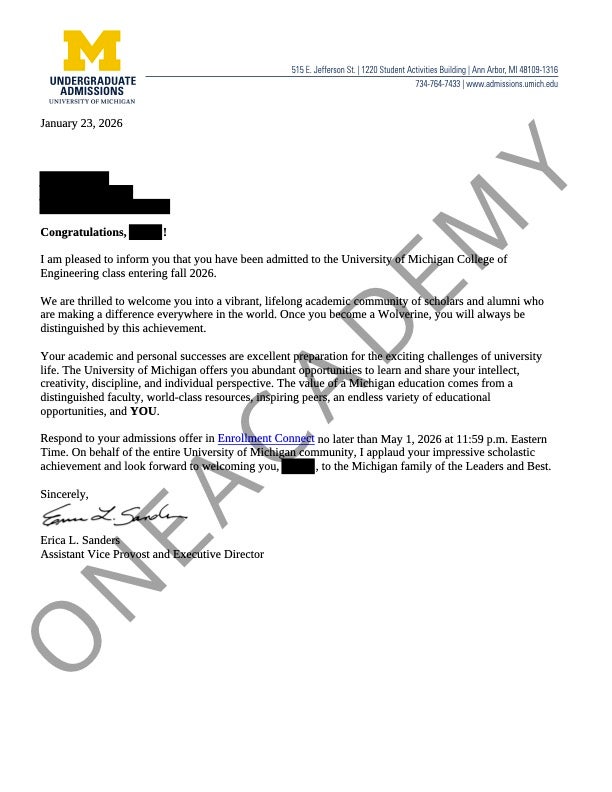 [미국대학 얼리 합격] 미시간 대학교 앤아버 (University of Michigan) 공대 합격!