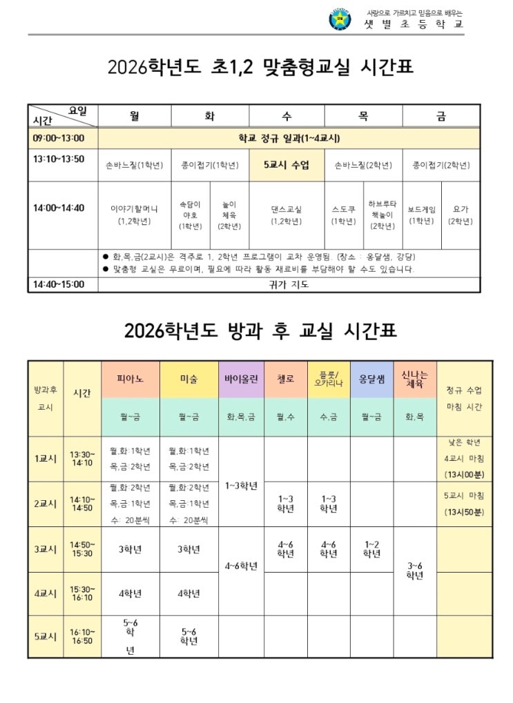 안녕하세요! 샛별초등학교 아이들의 하교 후 학습 골든타임을 책임지는 거창 영수 전문 [삼성영어 쎈수학러닝센터 거창드림학원] 원장입니다. 3월 새 학기가 시작되면서 샛별초 학부모님들의 가장 큰 고민 중 하나가 바로 '시간표 관리'와 '안전한 등원'일 텐데요. 사립초 특성상 방과 후 프로그램이 다양해 요일별 마침 시각이 다르기 때문입니다. 학부모님들의 편의를 위해 2026학년도 최신 샛별초 시간표를 분석하고, 저희 학원의 자체 차량 운행 정보를 공유해 드립니다! 1. 2026 샛별초 1, 2학년 맞춤형 교실 (정규 수업 후) 샛별초 저학년 아이들은 정규 수업이 끝난 뒤에도 학교 안에서 안전하고 유익한 활동을....... <img src="https://blogthumb.pstatic.net/MjAyNjAzMTJfMTQw/MDAxNzczMjc5MDAwOTE5.L1lVbfIBpD78AUmUiRdO4zVHUHlNYRA2KectyCkIMykg.vvz1ORfQNbKWDmE7RDUWCgFRMxeXomxa6TNo5TDlq_og.JPEG/900%A3%DFScreenshot%A3%DF20260312%A3%DF101351%A3%DFHancom_Office_Viewer.jpg?type=s3" />
