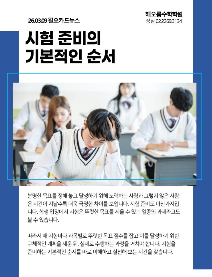 [구로 수학학원] 교육정보 - 시험 준비의 기본적인 순서