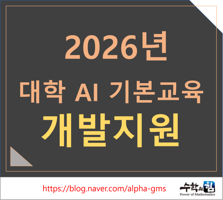 안녕하세요~! 폼나게 공부하고 폼나는 대학가자! 제주 수학의 힘 입니다. 교육부와 한국대학교육협의회는 지난 4월 23일에 2026년 대학 AI 기본교육과정 개발 지원사업 선정평가 결과를 발표하였습니다. 이 사업은 AI가 일상화된 시대에 전공과 관계없이 모든 대학생이 AI기본 역량을 갖출 수 있도록 대학의 AI 기본교육과정 개발을 지원하는 신규사업이라고 교육부는 밝혔습니다. 전공이나 지역 등 여건에 따른 대학 간 AI 교육 격차를 해소하기 위해, 교육부가 별도 지원하는 9개 교의 거점국립대 및 과학기술정보통신부가 선정하여 지원 예정인 10개 교의 AI 중심대학을 제외한 대학 중 20개교를 선정하여 지원합니다. 2026년 신규 선정 공모....... <img src="https://blogthumb.pstatic.net/MjAyNjA0MjVfMzcg/MDAxNzc3MDgxMzk2MTE1.5THyuojqTLsHuq6N2YzVkGoGE2iQE-Q3YLv8jDMC--og.lGONKJqG3PgE45Hxwuj83pMwDhuOEvBGnwd3NyRCpTkg.PNG/20260425_104158.png?type=s3" />