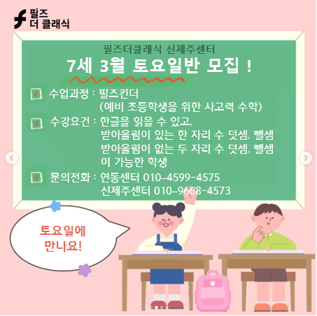필즈더클래식 신제주센터 7세 3월 토요일반 모집