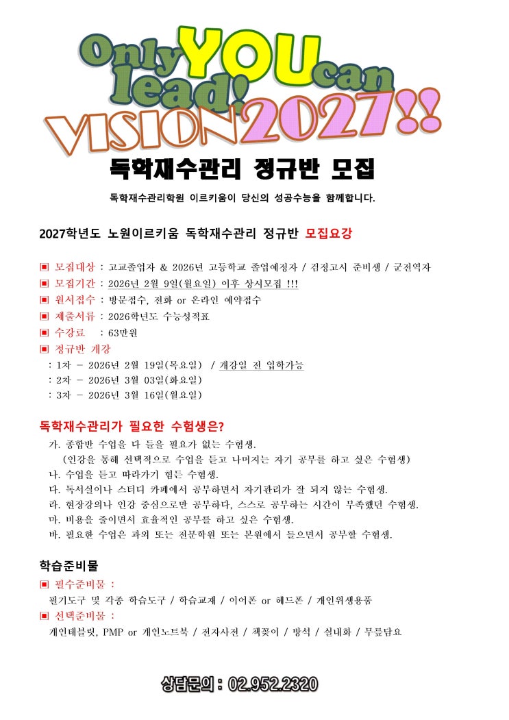 2027학년도 독학재수 정규반 모집안내