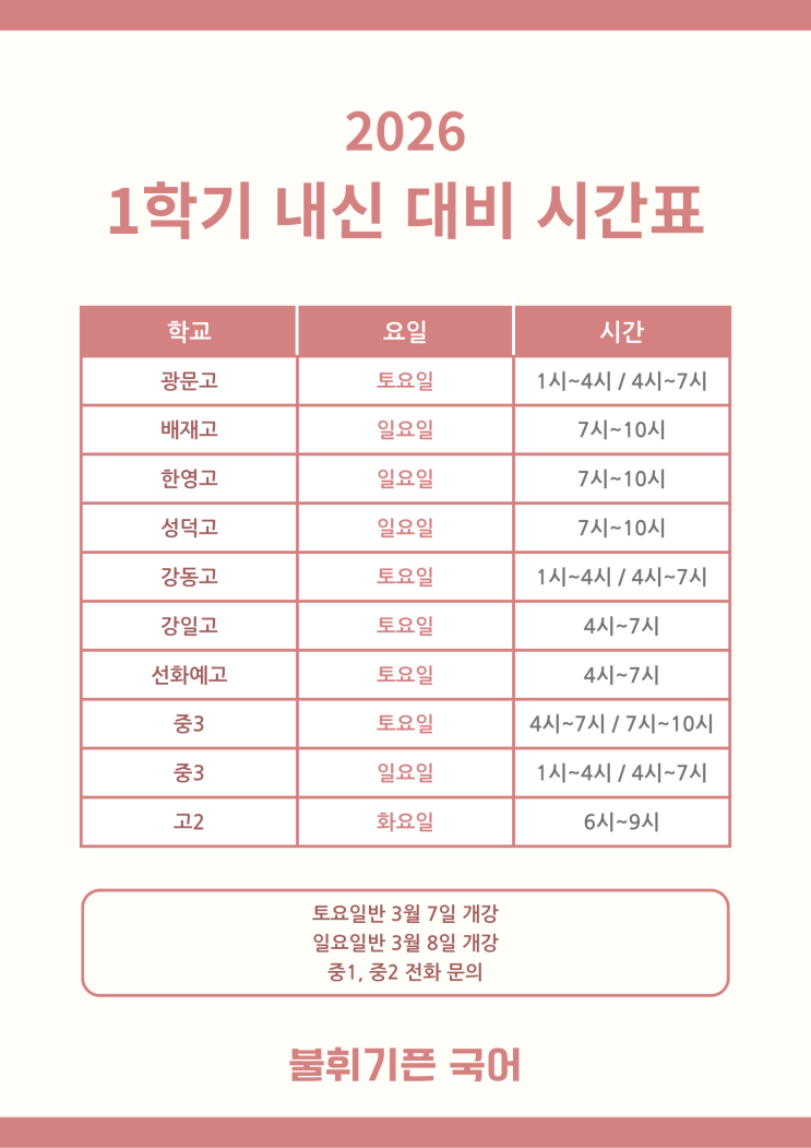 2026년 1학기 내신대비 시간표(수정)