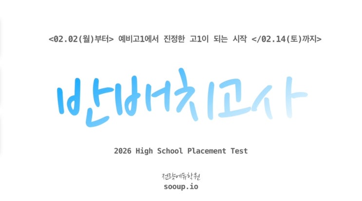 안녕하세요, 교육은 전략이다. 수학,과학 전문 전략에듀학원입니다. 벌써 예비고1의 경우 11월, 12월, 1월에 이어 이제 2월도 중반을 향해 달려가고 있습니다. 이제 학교에서도 예비고1 반배치고사가 코 앞에 다가왔습니다. 중학교 때 성적이 괜찮았다고 고등학교에서도 그대로 유지될까요? 많은 학생들이 고1 1학기 첫 시험에서 생각보다 낮은 점수를 받고 당황합니다. 왜 그럴까요? 고등학교 시험은 ✔ 문제 길이 증가 ✔ 서술형 비중 확대 ✔ 사고력·응용력 중심 출제 ✔ 내신 등급 경쟁 구조 중학교 시험과는 완전히 다르기 때문입니다. 그래서 필요한 것이 ‘예비고1 반배치고사’입니다. 반배치고사는 단순한 시험이 아닙니다. ✔ 현....... <img src="https://blogthumb.pstatic.net/MjAyNjAyMTFfMTU1/MDAxNzcwODA4NjEwMTI1.I9Meft7zPVjb5ZRO_ficOyo5_XsaO3VRgPVrC6uRsjog.UOpzxsd4DCZlgtkSPrMU2LHp6OxJTdo_FoPiDtB-GHog.JPEG/IMG%A3%DF0542.jpg?type=s3" />