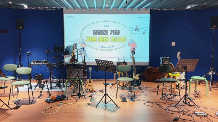 오늘도 Breezin! 지난 1월 17일 토요일 브리진 기타 교습소의 정기 콘서트 " 브리진 기타 - 가족 초대 콘서트 " 를 서울시민대학 미래홀에서 진행하였습니다. 작년에 이어 올해도 준비한 브리진 콘서트는 적극적으로 무대에 참여한 수강생들의 열정적인 마음, 관객으로 함께해준 모든 수강생과 가족분들의 열띤 환호, 응원이 모여 우리들의 페스티벌 우리들의 라이브 공연이 되었습니다 ! '교습소'라는 특성상 배울 수 있는 악기는 기타 악기뿐이지만 무대에는 드럼도 보이고, 콘트라베이스도 있어요 드럼, 보컬, 베이스.. 동료 아티스트 선생님들께서 함께 이 콘서트를 완성해주셨어요 수강생들의 연주가 더 풍성해질 수 있....... <img src="https://blogthumb.pstatic.net/MjAyNjAxMjJfMTUg/MDAxNzY5MDYzNjA5MTcz.RcG_ZCr5Z5mRz_afqcxZzxezjVC2De7ND3QjgyzjzN0g.DOJUsCq9Wo3nkxGiBD2M8o_BqtbewwNRpRe2S0rTtqYg.JPEG/%BA%EA%C4%DC1.jpg?type=s3" />