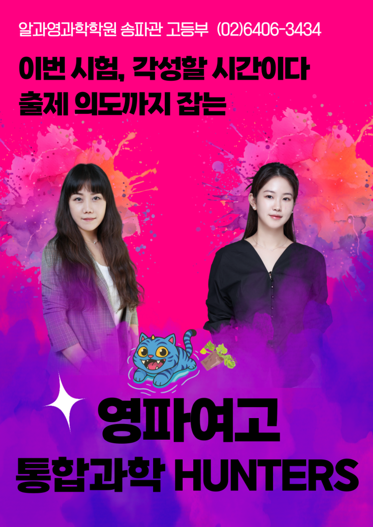 안녕하세요? 알과영과학학원 송파관입니다. 어느새 벌써 춘 3월~ 내신 개강을 앞두고 학생들을 맞이하기 위해 바쁜 나날을 보내고 있는 알과영입니다. 학부모님들께서도 내신 시간표 세팅하느라 많이 바쁘셨죠? 저희 학원에도 이런저런 문의와 상담 요청이 많았는데요~ 특히 영파여고 학부모님들께서 근래에 많은 방문을 주셨기에 영파여고 내신 소식을 전해보려고 합니다. 영파여고 통합과학 내신 설명회 지난 2월 3일, 알과영에서는 영파여고 학부모님들을 모시고 설명회를 진행하였습니다. 영파여고 통합과학 내신을 맡으신 정우진T와 채현주T가 직접 인사를 올렸는데, 그 내용을 핵심만 짚어드리자면... "통합과학 교과서 개정 & 수....... <img src="https://blogthumb.pstatic.net/MjAyNjAyMjhfMTEg/MDAxNzcyMjg0NjgzMjk4.l5SOUHEko2II1ypjsj1fVW-O83B_SUr4QI1ak69PvgQg.O3Vs28YFXrXbGpT9ha0guETlNRGRkDWx3o3hFcajVwEg.PNG/%BF%B5%C6%C4%BF%A9%B0%ED-001.png?type=s3" />