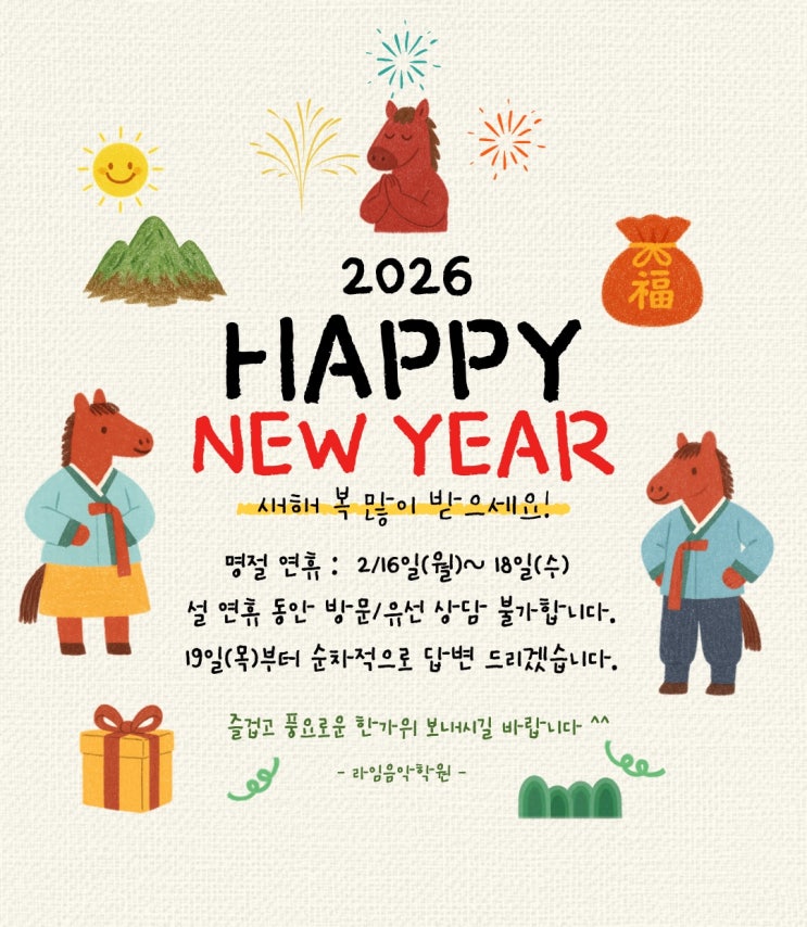 [휴원일정] 2026 새해 복 많이 받으세요!♀️
