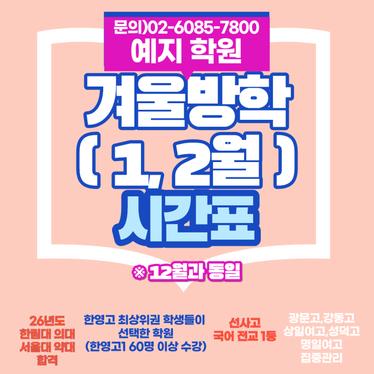 겨울방학(1,2월) 시간표(※ 12월과 동일) [강동구국어학원][고덕역국어학원]