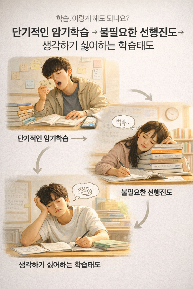 ▶올바른 중학교 1학년 수학 학습 딱! 위의 포스터와 같이만 안하면 됩니다. 학생들의 수학적 흥미를 떨어뜨리고 학년이 올라갈수록 수학을 더 어렵게 만드는 잘못된 접근법입니다. 겨울방학 기간 동안 선행 좀 했다는 중학생들이 입학 했습니다. 오리엔테이션을 통해 기본적인 수학능력을 파악한 후 대부분 자기학년의 개념서와 기본 유형서를 제대로 학습합니다. 현재 신입원생들 2개월 간의 학습량은 시중교재 4권 분량입니다. 한 문제도 그냥 넘어가지 않습니다. 풀이 습관부터 문제 해석 방법까지 원장이 직접 꼼꼼하게 파악합니다. 포스팅하는 오늘 수업시간에도, 자기 학년의 고난도 문제를 풀어 내는 과정에서 여러가지 고쳐야 할 점 들....... <img src="https://blogthumb.pstatic.net/MjAyNjAyMDRfMTMz/MDAxNzcwMjEzODc4MzQ4.YGD4yHc7pVR6C68vmWQSlnpVzp6XTSdvElpcIAyzirkg.NlHH07zhmyn4Xs5iwzio18WKO-Ggi-6awYe5HIDhoRwg.PNG/%C7%D0%BD%C0%C5%C2%B5%B5_%BA%AF%C8%AD%2C_%C0%DF%B8%F8%B5%C8_%BD%C0%B0%FC2.png?type=s3" />