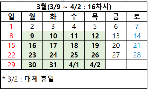 26년 3월 수업 스케줄