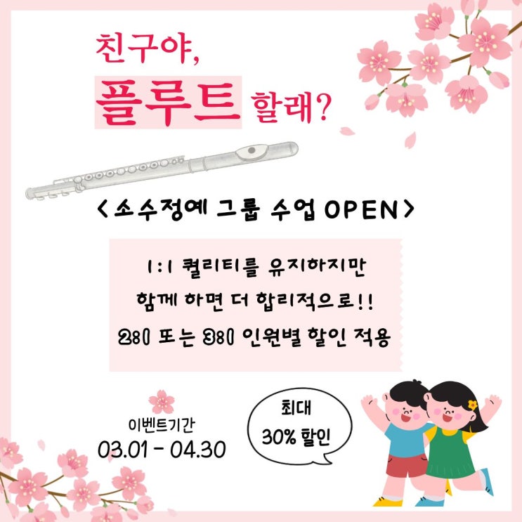새학기 + 봄맞이 "그룹 할인" 이벤트 ㅣ 동탄 플룻 ㅣ 동탄 플루트 학원 ㅣ 문플루트 Moon Flute