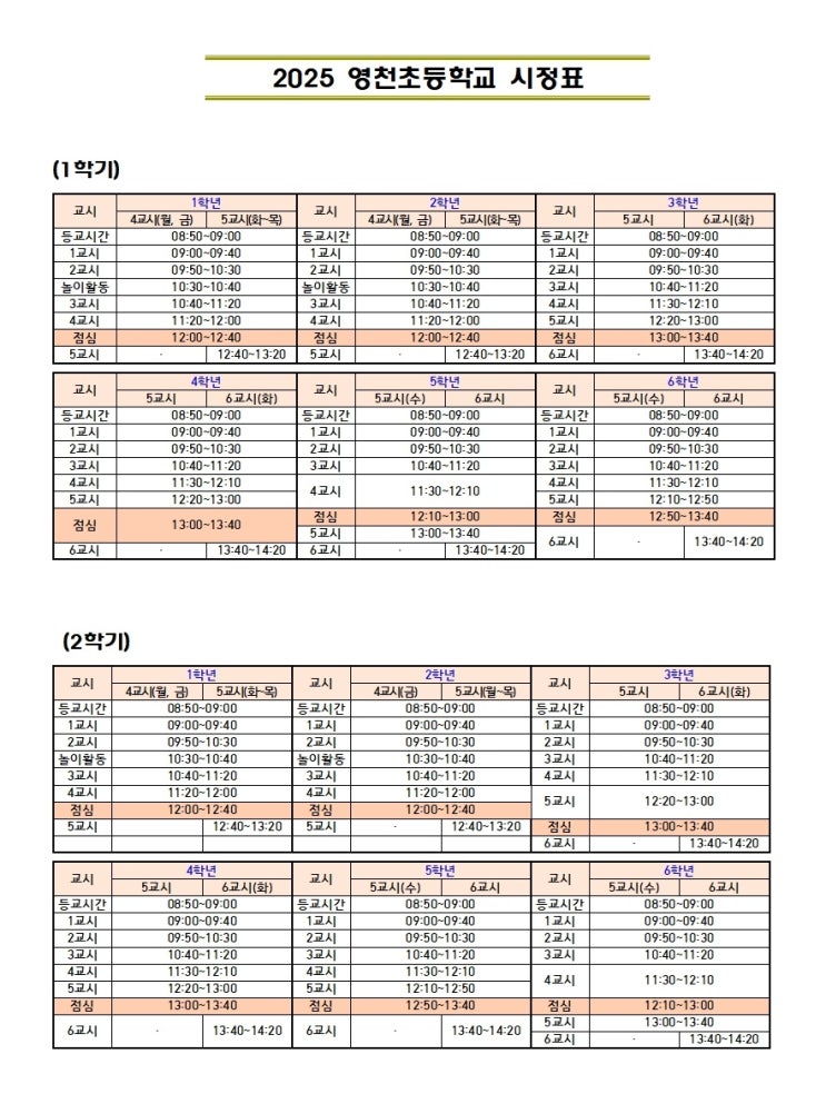 2026학년도 동탄 영천초등학교 학사일정 공유 드려요
