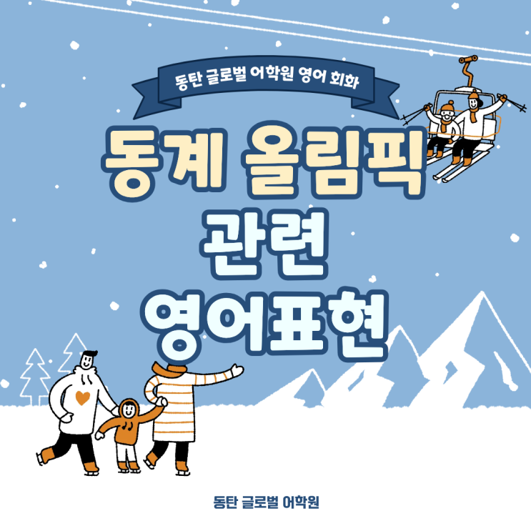 안녕하세요! 동탄 글로벌어학원입니다~ 요즘 전 세계의 관심은 2026 밀라노-코르티나 동계올림픽 에 쏠려 있습니다. 이탈리아의 도시 밀라노를 중심으로 펼쳐지고 있는 이번 동계올림픽은 뜨거운 열기를 느끼게 하죠 우리나라 선수들은 어떤 종목에 출전할까요? 그리고 그 종목들을 영어로 말하면 어떻게 표현할 수 있을까요? 오늘 포스팅에서는 우리나라 참가 종목을 영어로 알아보고 동계올림픽에서 자주 쓰이는 영어 회화 표현까지 함께 살펴본 뒤 실전처럼 말해볼 수 있는 글로벌어학원 개설 강좌도 소개해드릴 예정입니다. 올림픽은 ‘세계가 하나 되는 축제’입니다. 그리고 영어는 그 세계를 연결하는 언어입니다. 이번 기회에, 올림픽을....... <img src="https://blogthumb.pstatic.net/MjAyNjAyMjBfMjEx/MDAxNzcxNTgwMzk3OTAz.nBLQKkbtCaTFpv1QK20vzLS-dHD3Bx137HWmJXLpLiog.P-UjImiM6RfO0ITcFkLLGiB8pH91WmBEUNCls3S9MiYg.PNG/1.png?type=s3" />