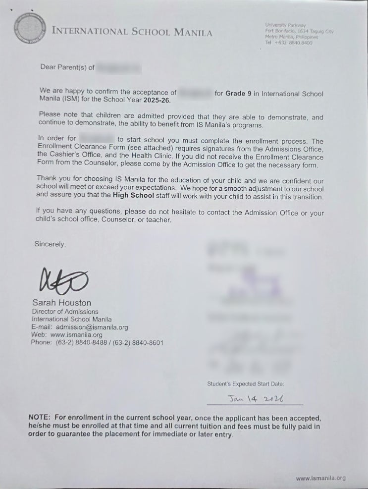 [합격소식-2관왕] 필리핀 마닐라 Brent International School과 International School Manila (ISM) 국제학교 G9/G7 합격생