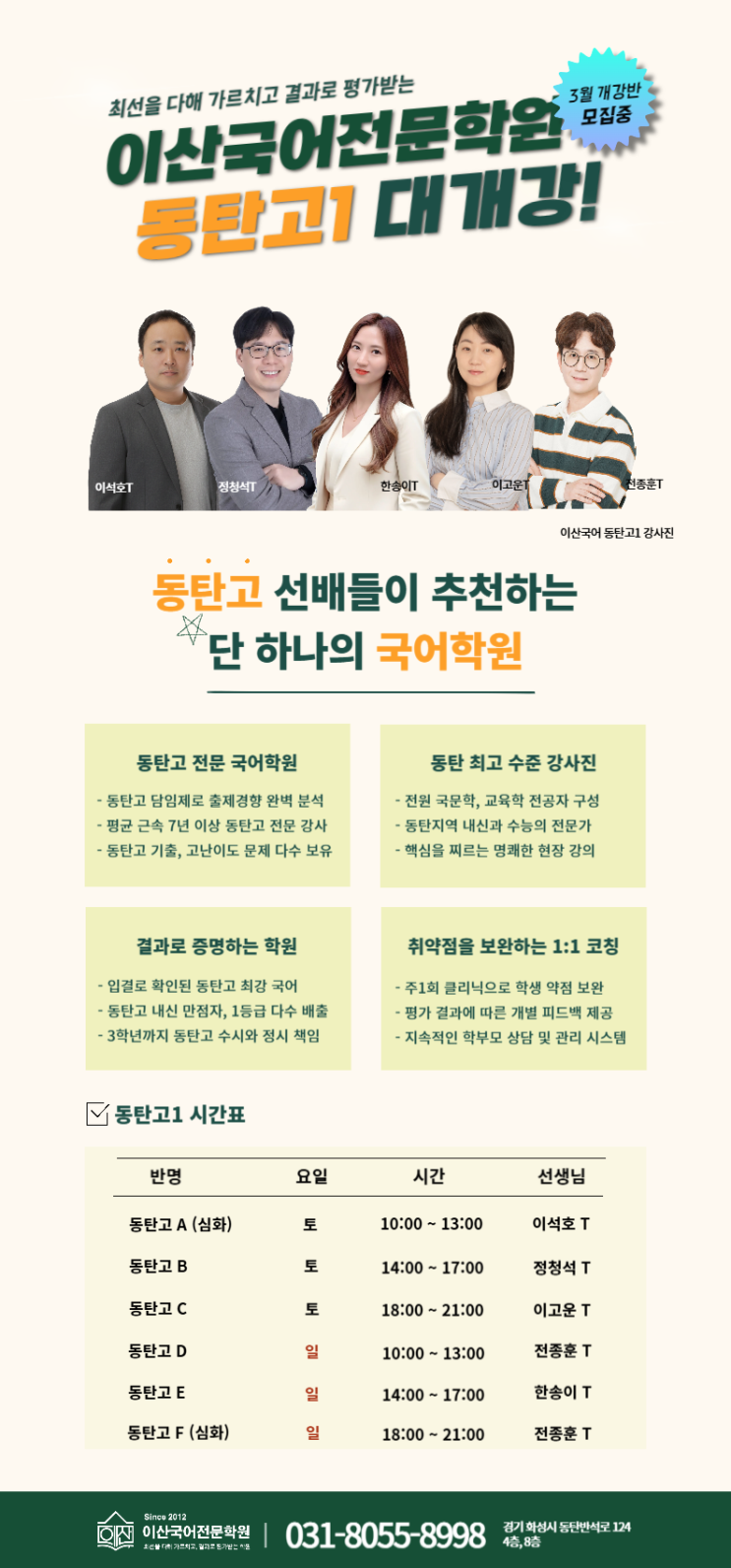 2026학년도 동탄고 1학년 3월 국어 개강 안내 _ 이산국어 전문학원