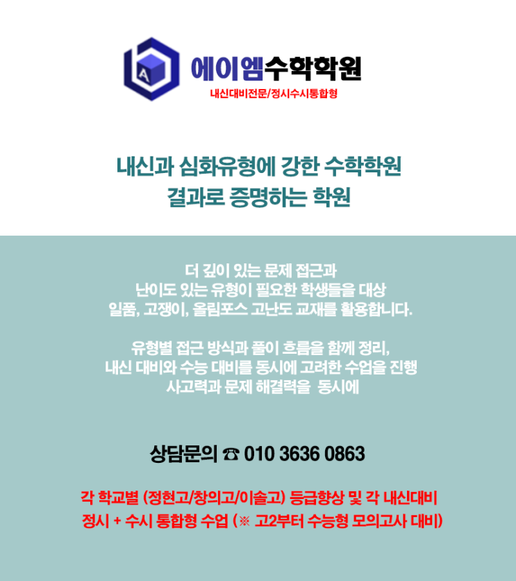 [에이엠수학학원] 내신대비전문(정현고/이솔고/창의고/서연고/청림중/세정중/방교중)