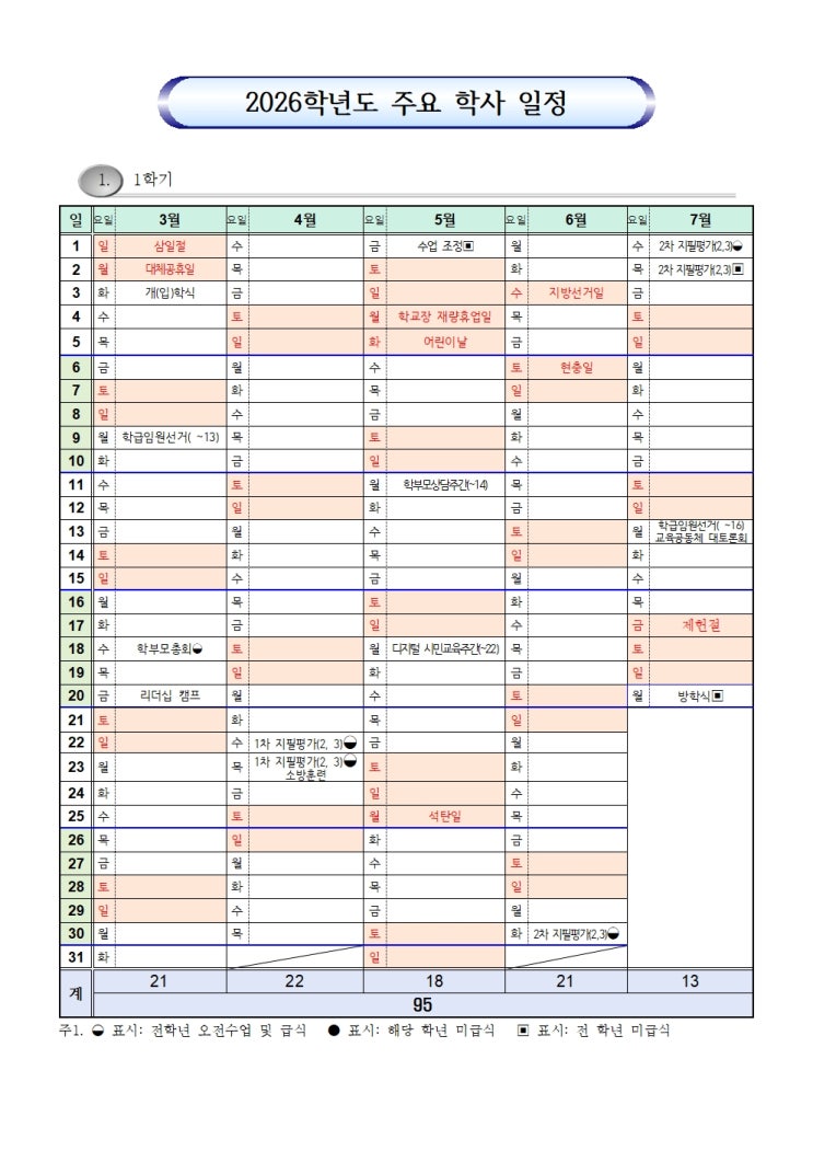 향남중 2026학년도 학사일정