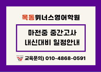 [마전동영어학원][목동위너스영어]마전중 중간고사 일정