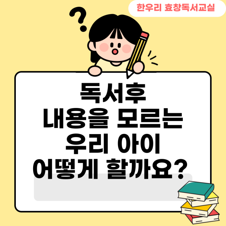 안녕하세요. 한우리 효창 독서교실 장쌤입니다. 수업 시간에 아이들에게 “책 다 읽었니?”, “어떤 내용이 인상적이었어?” 하고 물어보면 대부분은 자신 있게 자신있게 대답합니다. 그러나 이런 활동들을 부담스러워하는 아이들도 있습니다. “재미있었는데 무슨 내용인지 기억이 잘 안 나요.” “읽었는데 무슨 내용인지 모르겠어요.” 주변에 이런 아이들이 있지 않나요? 이런 반응은 단순히 책을 대충 읽거나 집중을 안해서가 아니라, 읽기 방법을 잘 모르기 때문일 수도 있습니다. 요즘 아이들은 태어나면서부터 디지털 환경에 노출됩니다.영상과 빠른 정보에 익숙해져 있어 자연스럽게 읽기 과정을 익히기 어려운 환경이지요. 그래서 초등....... <img src="https://blogthumb.pstatic.net/MjAyNTExMTlfMjEw/MDAxNzYzNTIxNzUxNzc3.6CRUzm64n8qcBtRJFfBx4X4Ddh9xcyKFWxsYa87gYBYg.PhGrutdu7-JlblFM9Tz3FvGP5CqcjWZJ6pke-RWfR5Mg.PNG/001.png?type=s3" />