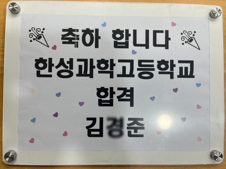 우리 맥스학원에서 열심히 공부하고 학교 내신에서 또한 전교권을 유지하던 김*준 학생이 한성과학 고등학교에 합격 하였습니다. 성실하게 항상 노력했던 이 학생은 목표를 이루고자 정말로 열심히 공부하였습니다. 기특하고 대견하면서도 한켠으로는 너무 고생을 해온 것을 알기에 안쓰럽기도 하였습니다. 결과가 너무 좋아서 정말 기뻐요~~ 우리 *준 학생 축하해요!!! #전교1등 #올백 #올백전교1등 #오산중전교1등 #한강중 #한강중학교 #서울오산중 #오산중학교 #보성여중 #보성여자중학교 #한남초등학교 #숭의초 #리라초 #한남동국어 #한남동국어과외 #국어수업 #국어학원 #용산국어학원 #국어학원 #맥스아카데미 #한남동영어학원 #한남동영수....... <img src="https://blogthumb.pstatic.net/MjAyNTExMjhfODAg/MDAxNzY0MzE0ODUzNzE4.66ICO6QmrEsad_6nnSsPzIk0Wsy92IOpCiyWTUd4WXog.MXF_uQ8PpkPEdy1zRXR-UpzyZgDd06Pkn9DrFnO_6Ukg.JPEG/KakaoTalk_20251128_162053142.jpg?type=s3" />