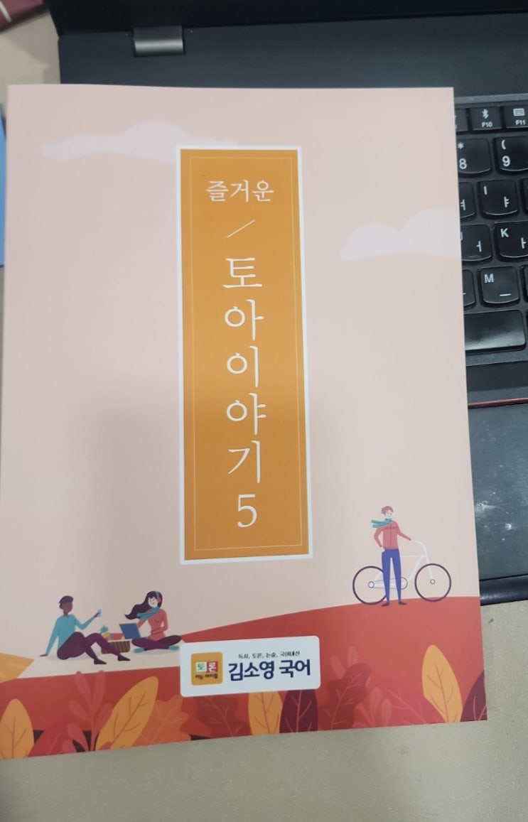 문집 〈즐거운 토아 이야기 5〉가 나왔습니다. 2025 전국 글쓰기 공모전에 입상한 저희 원의 수상작들을 모아 책으로 엮은 것입니다. 문집은 기획부터 편집까지 제가 직접 하지요. 표지도 제가 선택하고요. 봄이 오고 있는 시점에 웬 가을톤인가 싶으실 수도 있겠지만, 2018년 개원 이후 지나온 시간들을 떠올리다 보니 오히려 이 색감이 더 잘 어울린다는 생각이 들었습니다. 한 해의 시간은 빠르게 지나가지만, 이렇게 글로 묶어 놓고 보면 그 시간이 결코 가볍지 않게 느껴집니다. 여무는 계절, 가을처럼 아이들의 생각과 글도 시간을 지나며 조금씩 깊어져 왔습니다. 그리고 그 한 해 한 해가 이어지며 지금까지의 시간도 함께 쌓여 왔습니다....... <img src="https://blogthumb.pstatic.net/MjAyNjAzMTdfMTE0/MDAxNzczNzI1ODUwMTk2.F295i3u3u5a9FxNvhQ__UEO-9OsPX3AotJK6i1lZhksg.EHUchr7aiz6KYxevdGpgRW3w1FrqgPj0USJhMGzHjrIg.JPEG/file%A3%DF000000006af0722f8fef789df4a10ed7.jpg?type=s3" />
