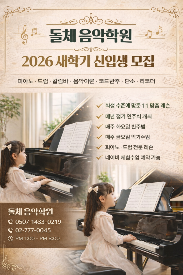 새학기, 후암동 돌체음악학원 피아노 ,드럼 신입생 모집