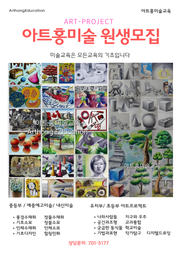 아트홍미술 3월 신입생 모집