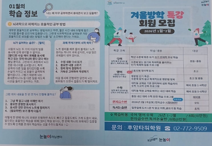 용산테마트 권수학 겨울방학안내