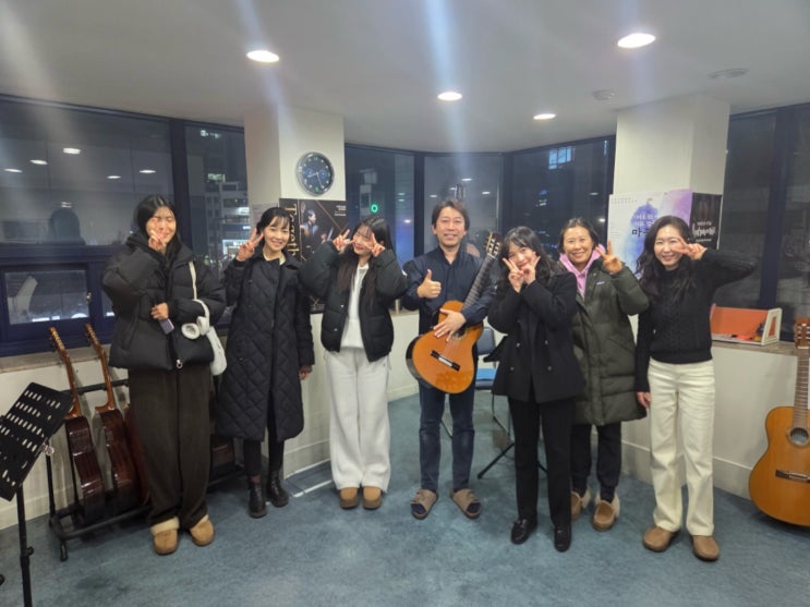 안녕하세요~ 새해가 시작되고 어느덧 2026년 첫 수업들이 하나둘 진행되고 있어요. 아직은 공기가 차갑지만 기타 소리가 울리는 학원 안은 조금은 따뜻하게 느껴지는 요즘입니다. 오늘은 서울역 근처 기타학원, 윤원준기타교실에서 새롭게 시작한 ‘기타 합주단 2기’ 첫 수업 이야기를 전해드려요. 이 사진은 클래아스 앙상블이 아니라, 윤원준기타교실 Step.2 교재를 수료한 수강생들을 대상으로 저, 윤원준과 함께 시작한 윤원준기타교실 기타 합주단 2기 첫 수업 현장입니다. 서로 이름도 아직은 잘 모르지만, 기타라는 하나의 공통점으로 모여 같은 악보를 보고, 같은 박자를 세며 조심스럽게 화음을 맞춰보는 시간이었어요. 혼자 연습할 때....... <img src="https://blogthumb.pstatic.net/MjAyNjAxMDhfNTQg/MDAxNzY3ODU4MTQ5Mzg0.Yl7k4aCV-Zk9ONVb3g2M24EulwppYIbEnMIkv16LY3Yg.jFZ7Lt7r5okDC4YF5OHLgBnMWsO_HJnaYACuC4EKT2Mg.JPEG/KakaoTalk_20260108_161406566.jpg?type=s3" />